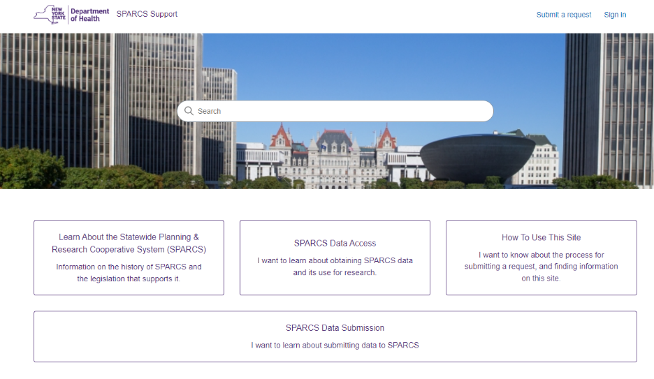 This site was designed to be the go-to resource for SPARCS data access. We have compiled articles covering a wide range of topics that feature solutions to most of the more common requests that come in to the team. These articles are grouped out by categories on our home page: